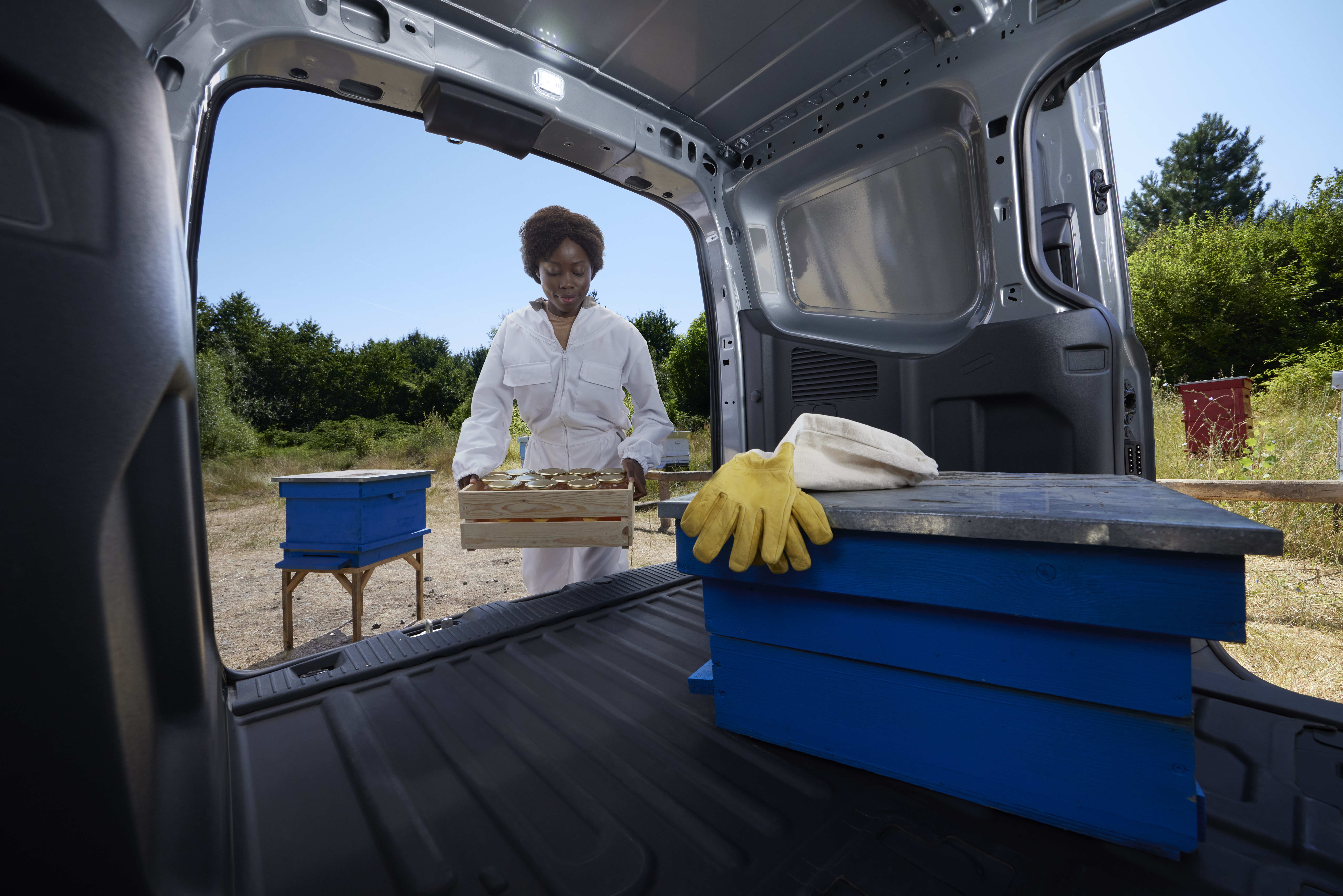 Riprogettato per massimizzare la capacità di carico. Con una larghezza di oltre 1,2 m tra i passaruota, il Transit Courier può trasportare due Euro Pallet a livello del pianale. Le luci del vano di carico a LED offrono una chiara visibilità del tuo spazio di carico.